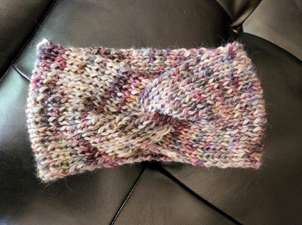 Headband with a twist by Mirella Moments. I knit this as my only charity knitting for April. I am ashamed, and will now make up for it in May.