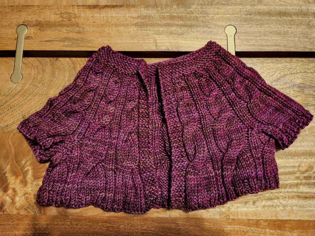 The Betty Cardigan (formerly the Switchback Sweater) by Rachel Brockman. This is 99.5% completed, but I am listing it as an FO. My buttons are ordered and have been shipped. They will be sewn on the day they arrive.