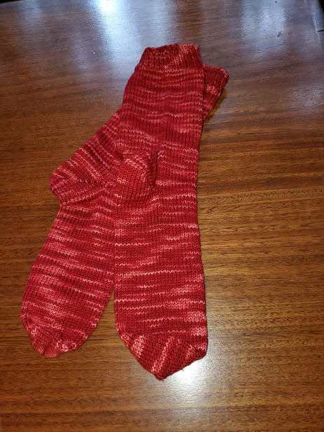 Husband socks- 66-stitch socks, toe up. Patons Kroy (best sock yarn Ever!)