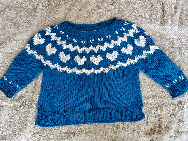 - Stacked stag-horn baby sweater- Stacey Cilia (https://www.ravelry.com/patterns/library/stacked-stag-horn-baby-sweater-dk-weight). This has been my go-to baby boy sweater for several years. While I am not a fan of bottom-up construction with sweaters, this is such a cute and quick knit. I always forget how quickly the little sleeves knit up.