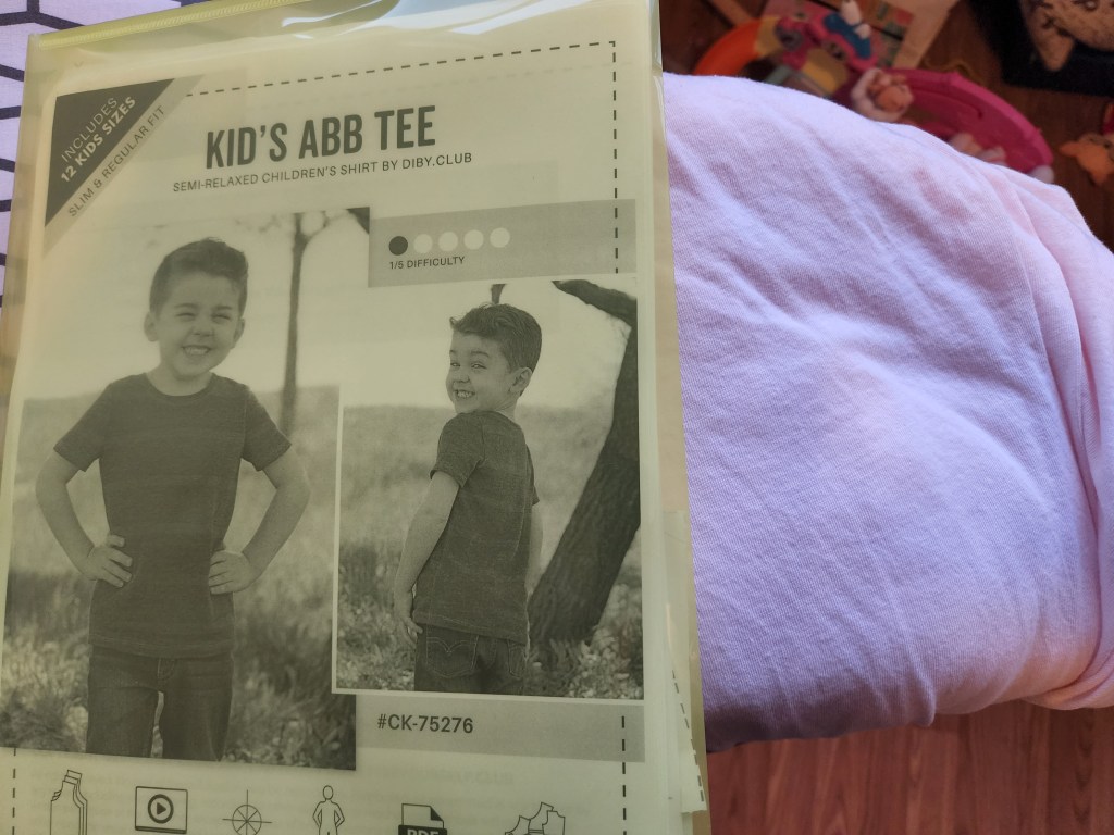 Pink jersey t-shirt for Feebs- using twin sized fitted jersey sheet