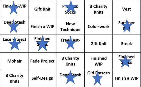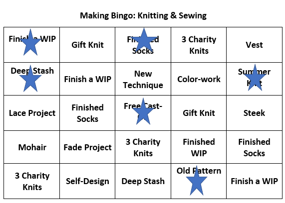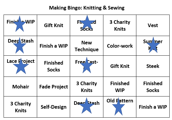 Oh, and my updated Knitting Bingo card! Someday I will add the Sewing Bingo card too…