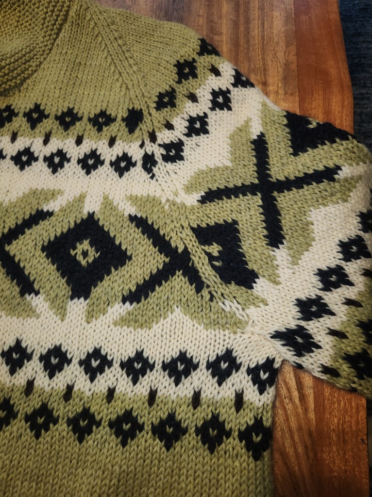 In the end, I am happy with how this turned out. I originally picked the sweater pattern out for myself, then decided that I would knit one for both of us. Unfortunately, the messiness of the decreases and how it interrupts the colorwork pattern is too much for my neurotic ass. I will let the Father enjoy his sweater, and I will go in search of another pattern that doesn’t make my eye twitch. I hope he loves his sweater. I hope it keeps him warm and gives him a feeling of being loved every time he wears it. I also hope like hell that he doesn’t forget himself and put it in the washer and dryer two weeks after he wears it… So, now Harris is done, and I can move on with my knitting life. Farewell, Harris. Enjoy your new home!