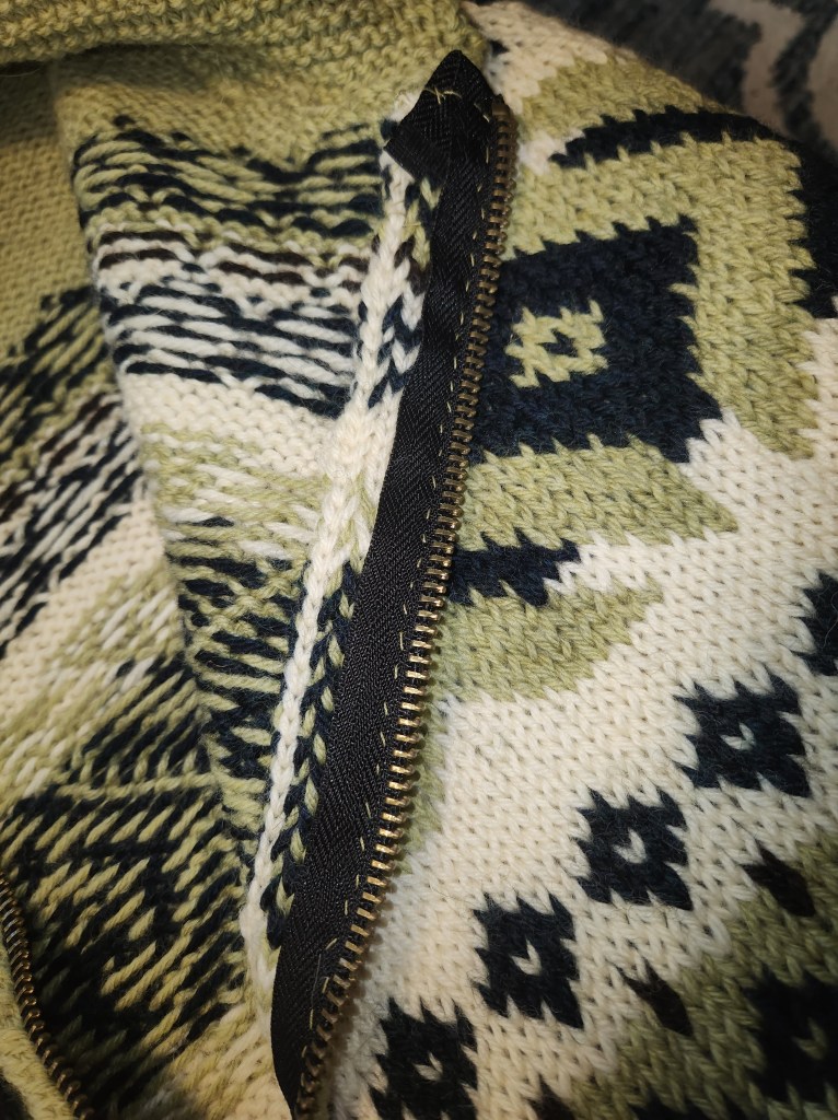 What went right: Being able to shrink it in the dryer was a godsend. I was very concerned about what I was going to do when it blocked to roughly a men’s 3X. Dad’s and XL. It hung off of his shoulders. He said he was still happy with it when he tried it on, but come on… You can tell when your dad is like “Aww, thanks for the artwork, honey.” I hope that it maintains the size, but I now have the confidence to try this again in the future if needed. The main thing that went right is that it’s done, and my daddy will have his me-made sweater. I do love Wool of the Andes. It is a good sturdy yarn that was built for colorwork/ steeking. I am still awed by steeking. It no longer freaks me out to do it and it really does seem like magic. I also like that I tried a new technique and sewed in a zipper. I was pretty pissed when I went to machine sew it, and it was too thick. I spent the next hour sewing it by hand. I was not a fan, but it wasn’t as horrible as I thought it would be. I am still debating if I am going to sew ribbon over the inside of the zipper. I know it would look nicer, but I will have to see if I get the motivation. I may be able to kill two birds with one stone and also tack down the steeked edge in the process. I have to ponder that.