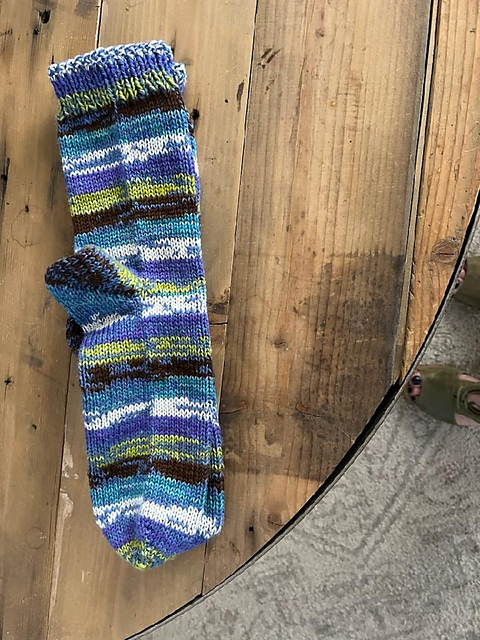Left-over socks for me. I used the rest of String Theory and Kraemer yarns. They are short socks, which are not my favorite, but I used every last bit of yarn.
