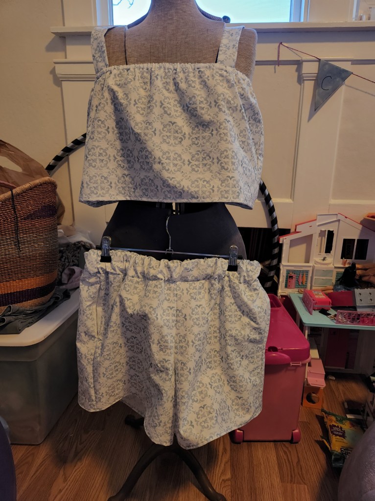 All in all, I think that I did a fairly good job on both pieces. While I am not the biggest fan of the shorts, I did try some new things, like the waistband. The top was 100% something that I have never done. Things that I want to learn more about is 1. how to smoothly serge a curved edge 2. how to serge a curved edge that you know will need to be clipped 3. how to cleanly place and attach straps to an elasticated edge. Is it better to place and sew before you add the elastic, or after? How do you measure properly if you use the before method? 4. Tension on both sewing machine and serger. How does this wizardry work and how often should it be adjusted on a project?