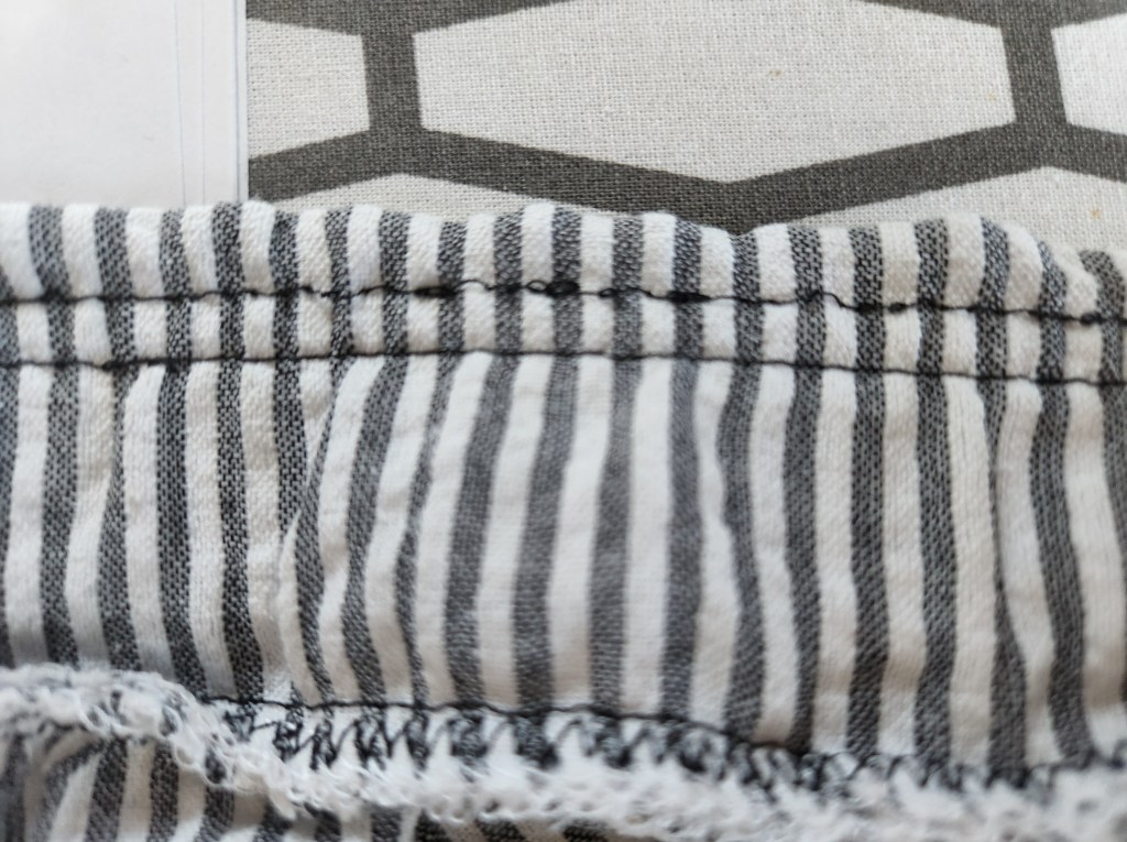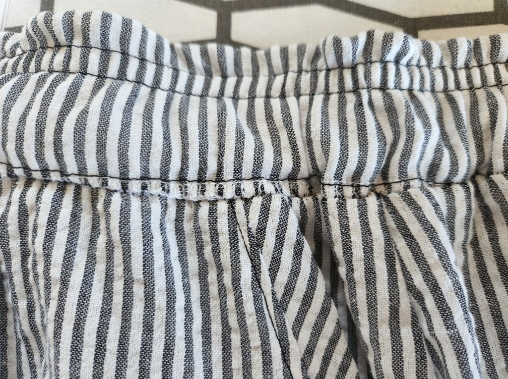 Tension continues to be an issue for me. I was smart enough to change my needle to accommodate the lightweight fabric, which was good. But tension continues to plague me. It was actually fine when I was sewing the fabric alone, but once I had to sew layers or the elastic, the party was over and everything is very loose and wobbly.