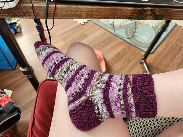 So, no finishing got done, but there was finally a happy amount of knitting. It wasn’t glamorous knitting, but it was knitting and that is all that matters. Years ago, I think it was shortly after I began to knit socks for real and had discovered the world of hand-dyed sock yarn, I purchased Lolodidit Everyday Sock in the color Sweet Tooth. I was nowhere near working out the formula for my vanilla socks, and knit myself a pair of socks that were too loose in the foot and too short in the cuff. Since I knit them as part of the Grocery Girls monthly Sock Talk challenge, I was so proud of them and wore them anyway. Fast-forward eight years and they are in the extra cubby in my closet, where all problematic socks go to be forgotten about. Feebs found them and told me how much she loved the yarn and wished they fit her. This is a long drawn out way of telling you that I am unravelling my old socks and knitting new socks for Feebs out of them. I got a new cutout of her foot, and got to work. I am knitting them toe up and got mostly to the heel by the end of the month. So not fancy knitting, by any means, but hey, something is happening! I have also been hardcore creeping patterns in my library and then musing what would work with my stash. There may be some matches made in heaven for knitwear in February. Through this whole seven-month debacle, no other crafts have hit my fancy, and that still hasn’t changed. We will see if anything changes going forward.